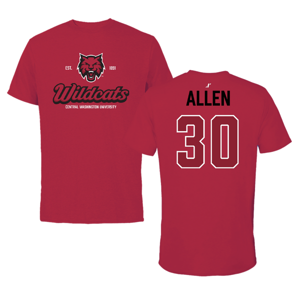 Central Washington University Football Canvas Red Tee - #30 Cale Allen