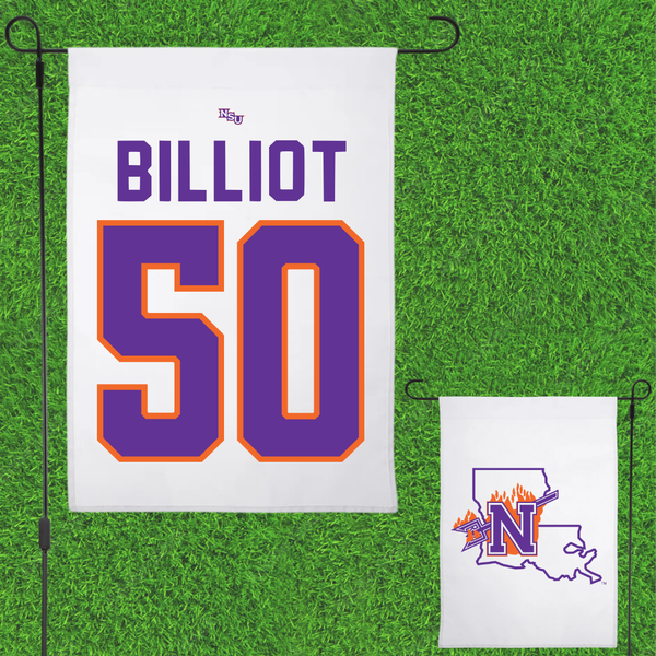 Northwestern State University Football White Garden Flag - #50 Caleb Billiot