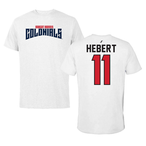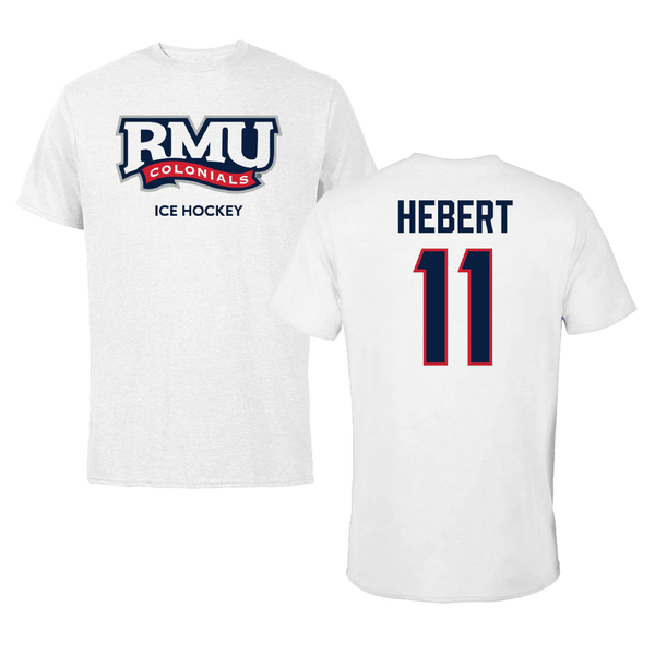 Robert Morris University Ice Hockey White Classic Tee - #11 Cameron Hebert