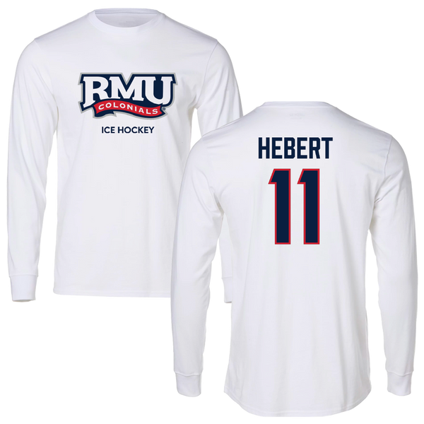 Robert Morris University Ice Hockey White Classic Long Sleeve - #11 Cameron Hebert