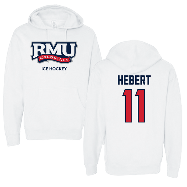 Robert Morris University Ice Hockey (M) White Colonials Hoodie - #11 Cameron Hebert