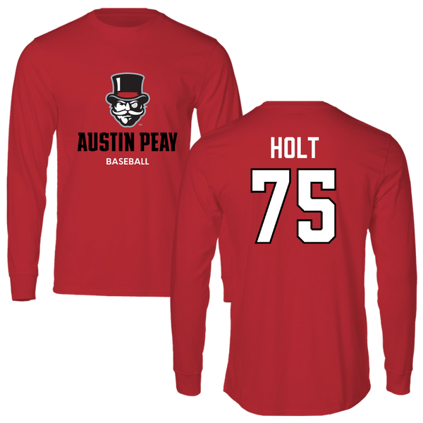 Austin Peay State University Baseball Red General Long Sleeve - #75 Campbell Holt