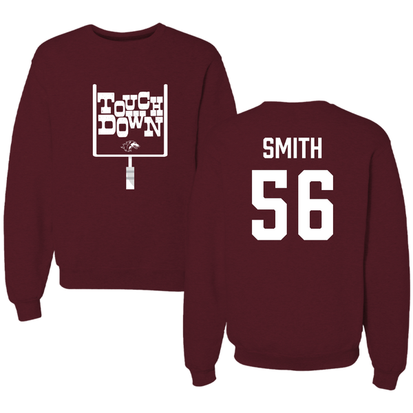 Southern Illinois University at Carbondale Football Maroon Touchdown Crewneck - #56 Carmelo Smith