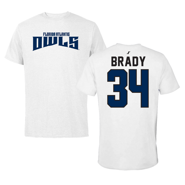Florida Atlantic University Baseball White Tee - #34 Carter Brady