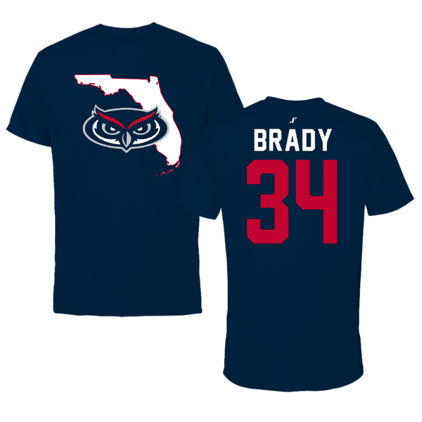 Florida Atlantic University Baseball Navy State Tee - #34 Carter Brady