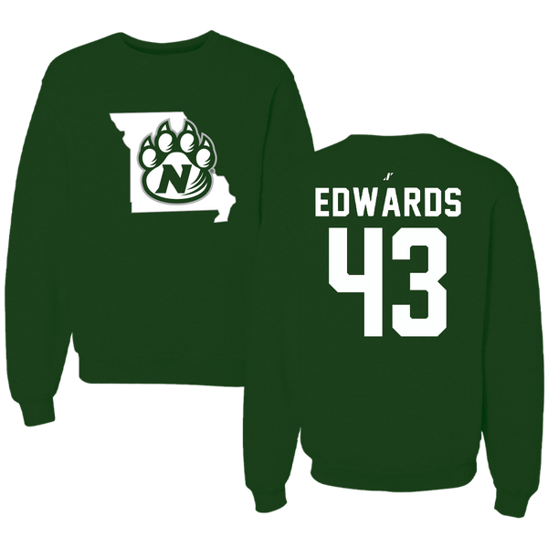 Northwest Missouri State University Football Forest Green State Crewneck - #43 Carter Edwards