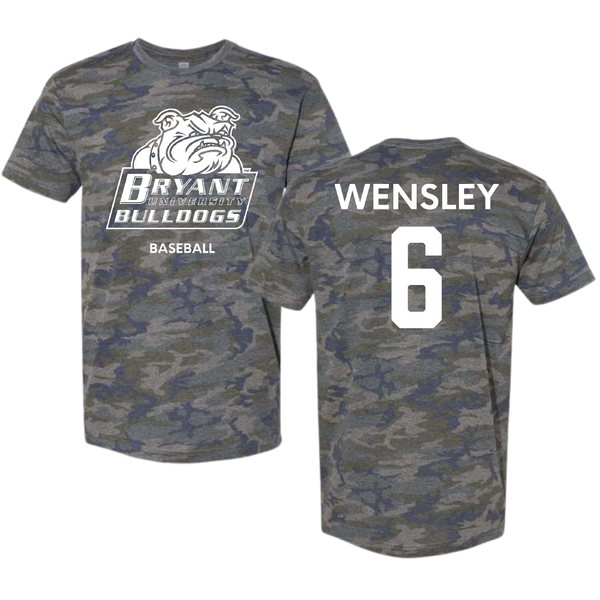 Bryant University Baseball Vintage Camo Tee - #6 Casey Wensley