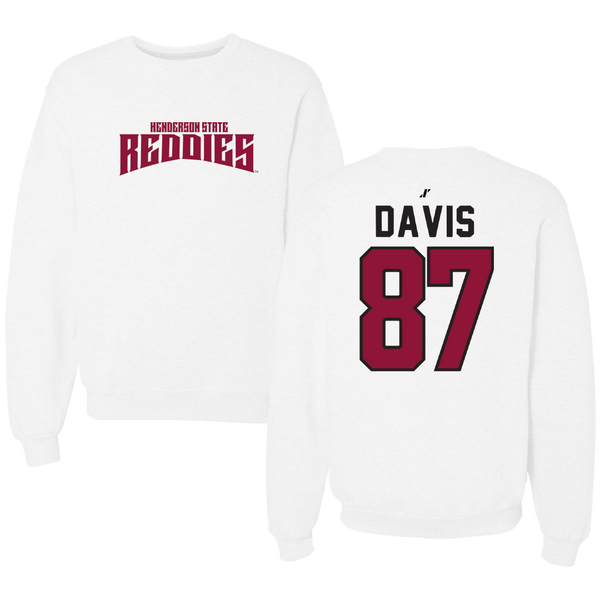 Henderson State University Football White Classic Crewneck - #87 Cayden Davis