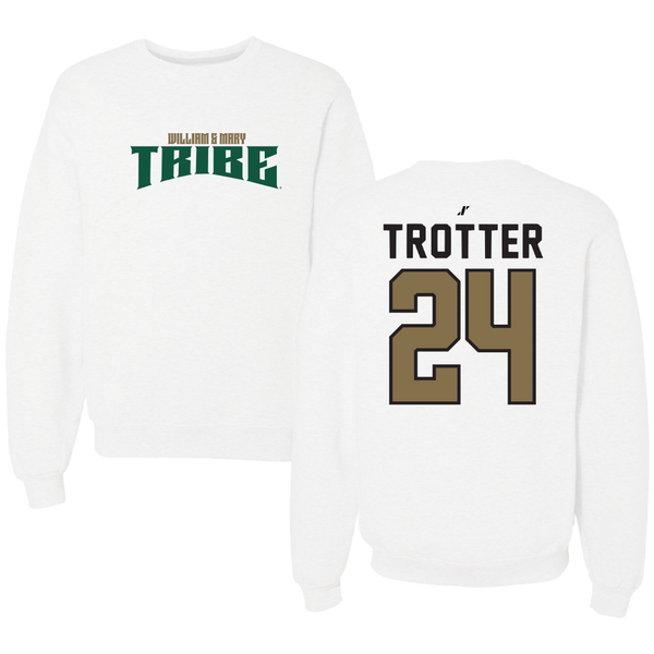 William & Mary Football White Classic Crewneck - #24 Cayden Trotter