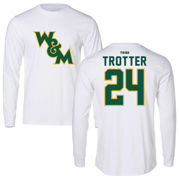William & Mary Football White Classic Long Sleeve - #24 Cayden Trotter