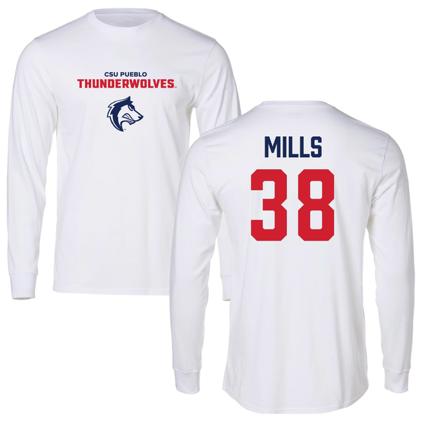 Colorado State University-Pueblo Football White Long Sleeve - #38 Cedric Mills