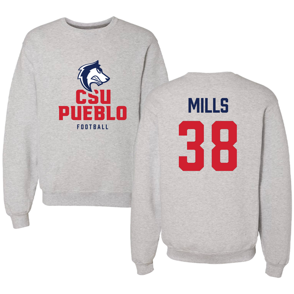 Colorado State University-Pueblo Football Gray Crewneck - #38 Cedric Mills