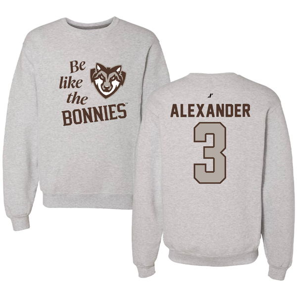 St. Bonaventure University Soccer Light Gray Be Like Us Crewneck - #3 Chanel Alexander