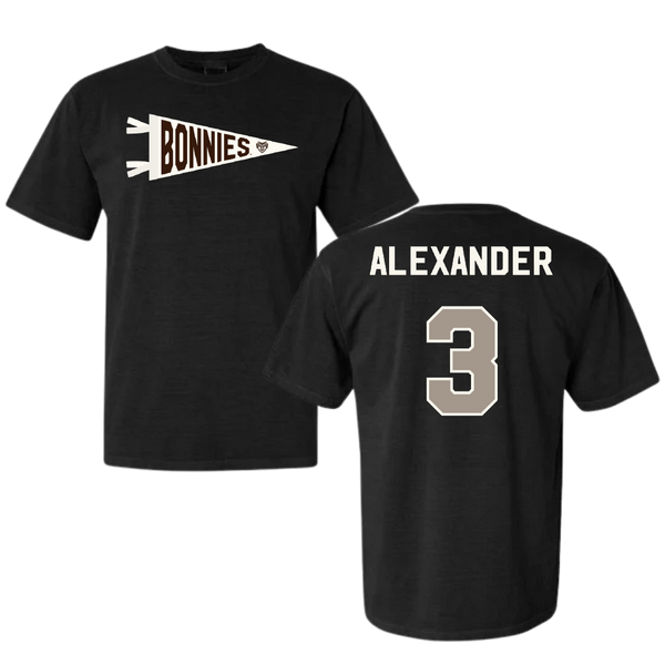 St. Bonaventure University Soccer Black Pennant Comfort Colors Tee - #3 Chanel Alexander
