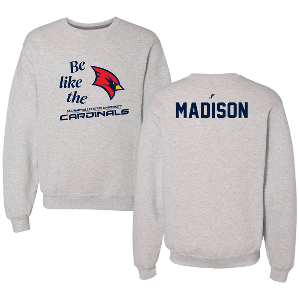 Saginaw Valley State University TF and XC Light Gray Be Like Us Crewneck - Chaniya Madison