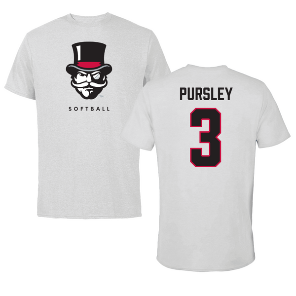 Austin Peay State University Softball White Tee - #3 Charley Pursley