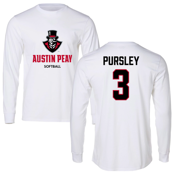 Austin Peay State University Softball White Long Sleeve - #3 Charley Pursley