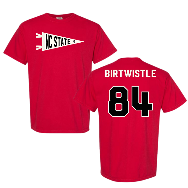 North Carolina State University Football Red Pennant Comfort Colors Tee - #84 Charlie Birtwistle