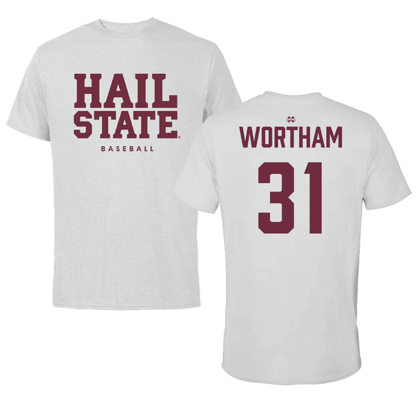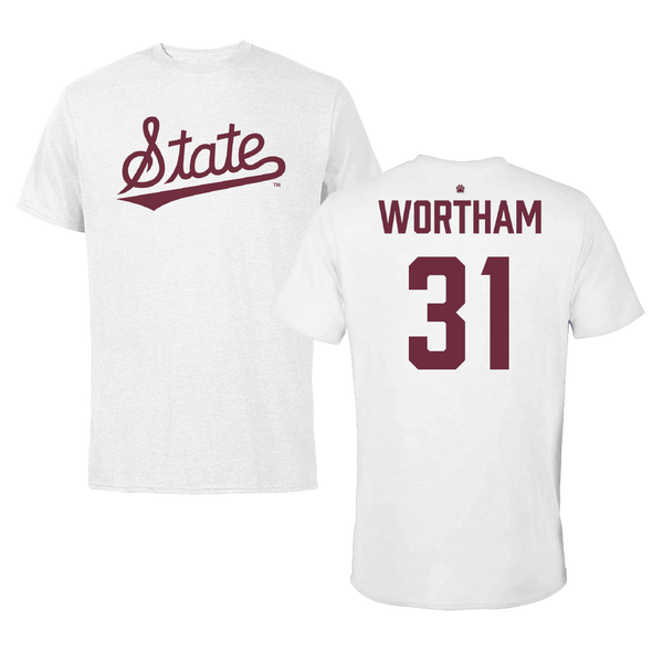 Mississippi State University Baseball White Baseball Tee - #31 Charlie Wortham