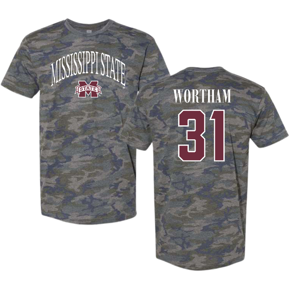 Mississippi State University Baseball Vintage Camo Tee - #31 Charlie Wortham