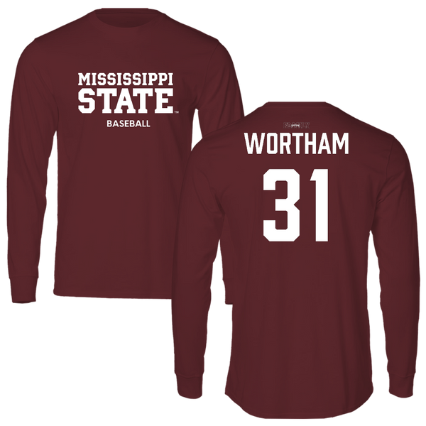 Mississippi State University Baseball Maroon Long Sleeve - #31 Charlie Wortham