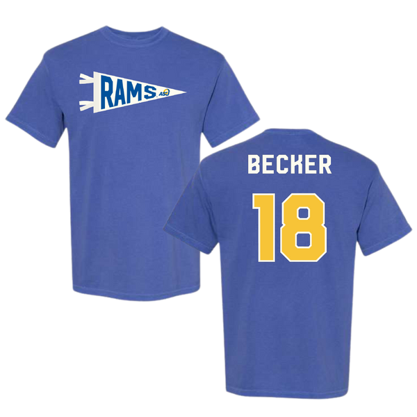 Angelo State University Baseball Blue Pennant Comfort Colors Tee - #18 Chase Becker