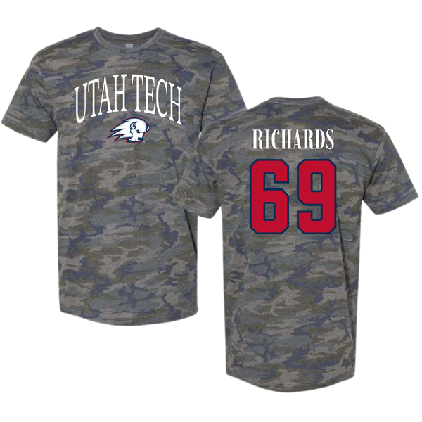 Utah Tech University Football Vintage Camo Tee - #69 Chase Richards