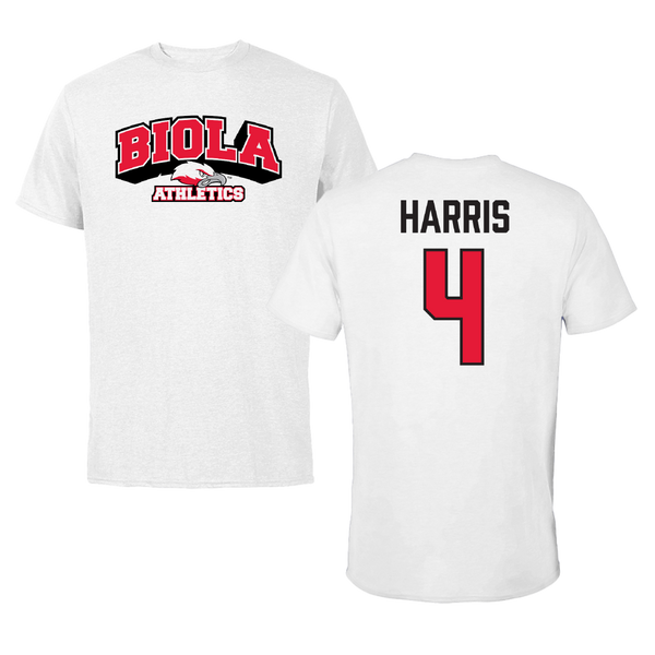 Biola University Basketball (M) White Tee - #4 Chris Harris