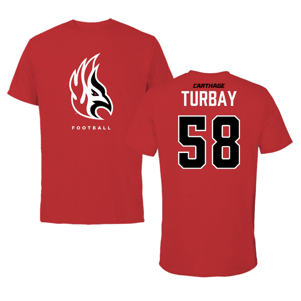 Carthage College Football Red Gameday Tee - #58 Chris Turbay