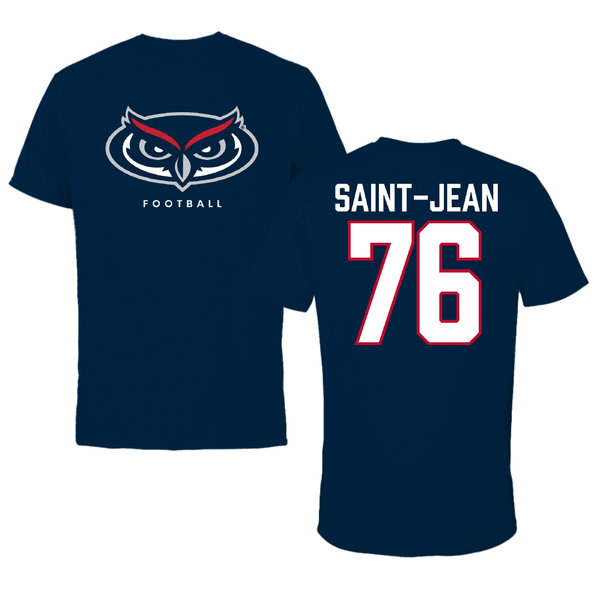 Florida Atlantic University Football Navy Touchdown Tee - #76 Chrisdasson Saint-Jean