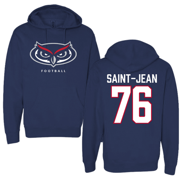 Florida Atlantic University Football Navy Touchdown Hoodie - #76 Chrisdasson Saint-Jean