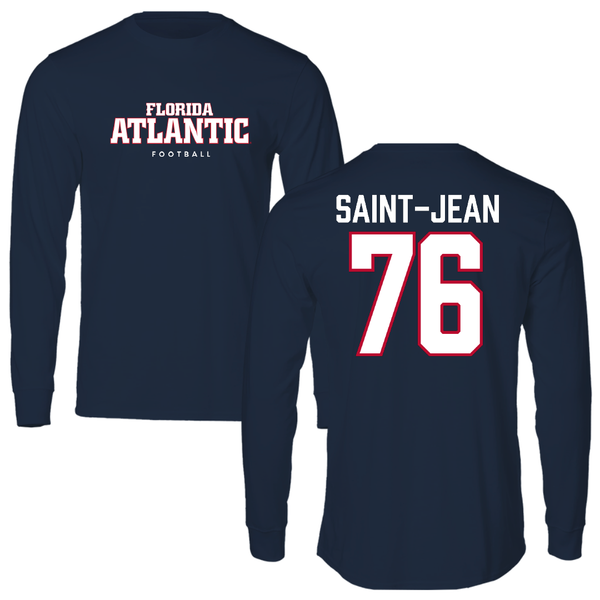 Florida Atlantic University Football Navy Block Long Sleeve - #76 Chrisdasson Saint-Jean