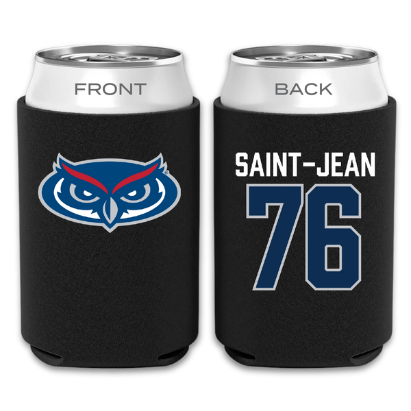 Florida Atlantic University Football Black Can Cooler - #76 Chrisdasson Saint-Jean