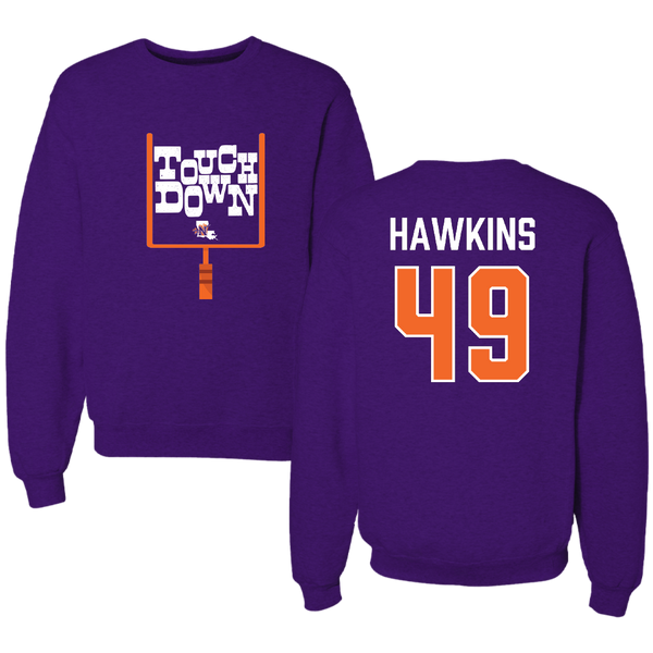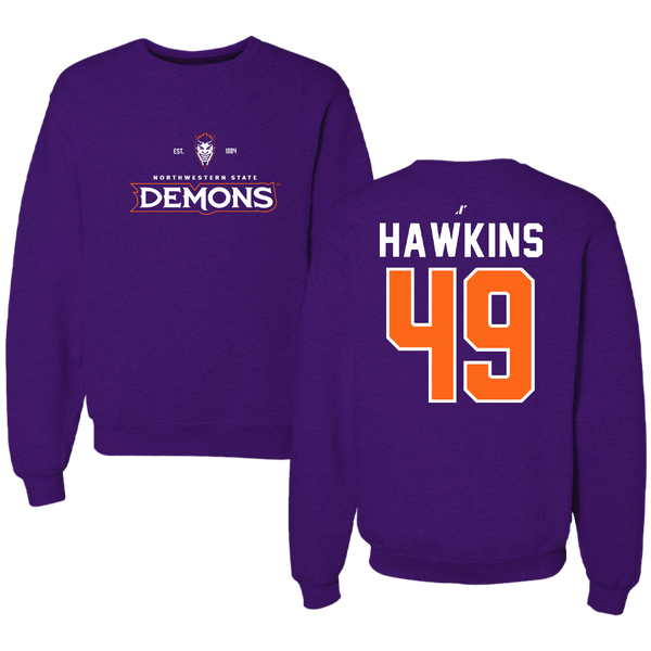 Northwestern State University Football Purple Touchdown Crewneck - #49 Christian Hawkins