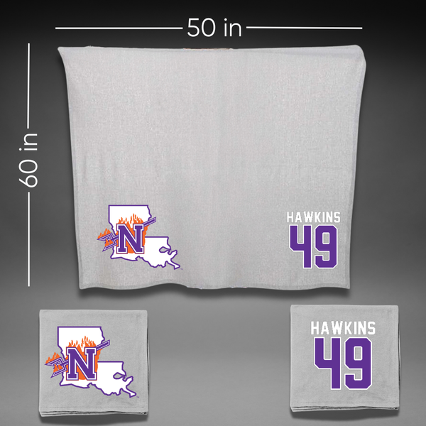 Northwestern State University Football Gray Blanket - #49 Christian Hawkins