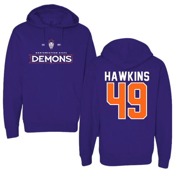 Northwestern State University Football Purple Hoodie - #49 Christian Hawkins