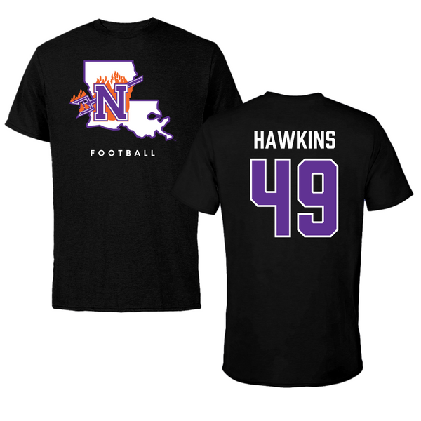 Northwestern State University Football Black Block Tee - #49 Christian Hawkins