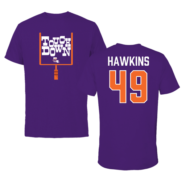 Northwestern State University Football Purple Touchdown Tee - #49 Christian Hawkins