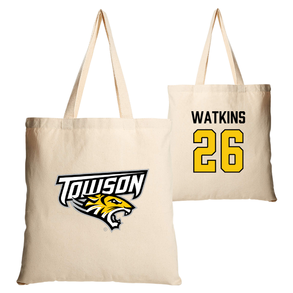 Towson University Football Tan Canvas Tote Bag - #26 Christopher Watkins
