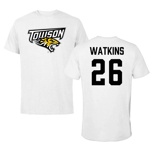 Towson University Football White Performance Tee - #26 Christopher Watkins