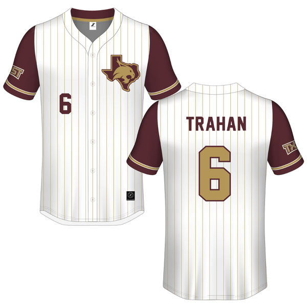 Texas State University White Pinstripe Button-Down Jersey - #6 Ciara Trahan