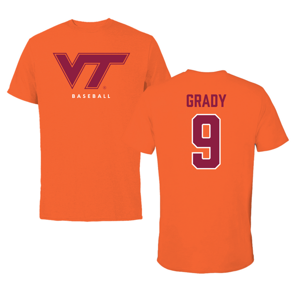 Virginia Tech Baseball True Orange Tee - #9 Clay Grady