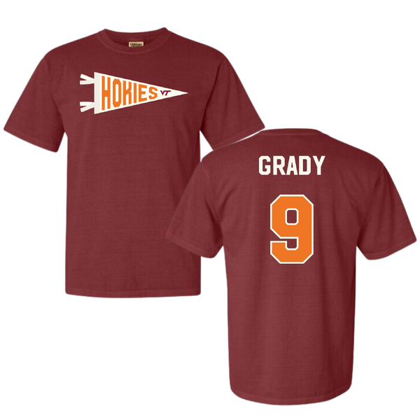 Virginia Tech Baseball Maroon Pennant Comfort Colors Tee - #9 Clay Grady
