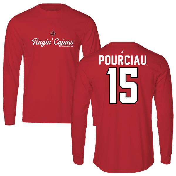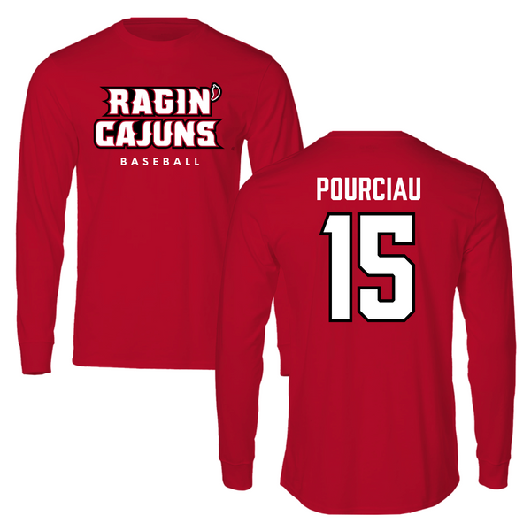 University of Louisiana at Lafayette Baseball Red Long Sleeve - #15 Clayton Pourciau