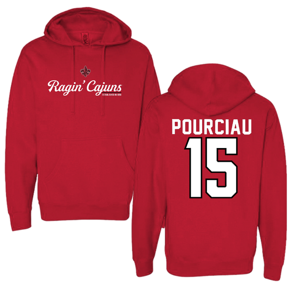 University of Louisiana at Lafayette Baseball Red General Hoodie - #15 Clayton Pourciau