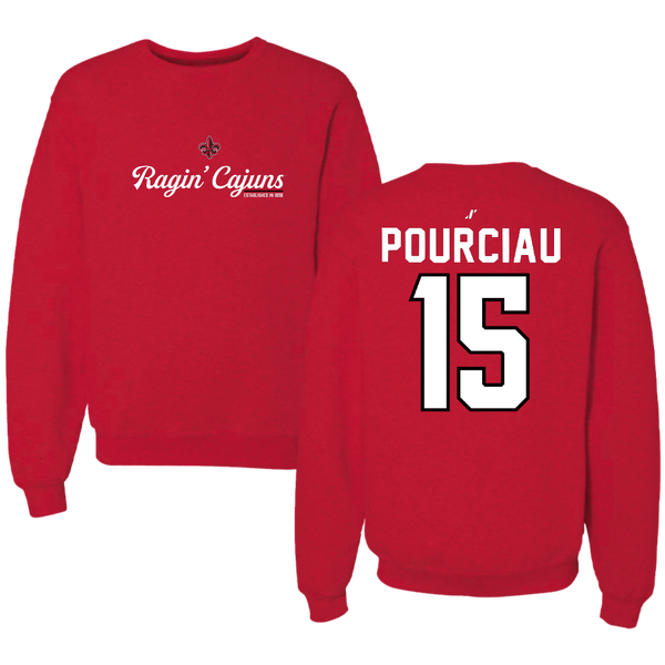 University of Louisiana at Lafayette Baseball Red General Crewneck - #15 Clayton Pourciau