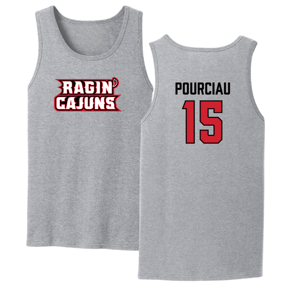 University of Louisiana at Lafayette Baseball Sport Gray Tank Top - #15 Clayton Pourciau