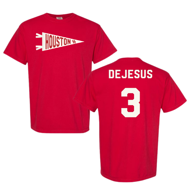 University of Houston Baseball Red Pennant Comfort Colors Tee - #3 Coby DeJesus