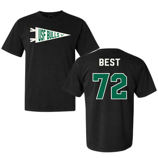 University of South Florida Football Black Pennant Comfort Colors Tee - #72 Cole Best