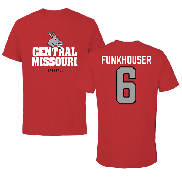 University of Central Missouri Baseball Red Tee - #6 Cole Funkhouser
